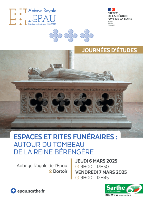 À la suite de la restauration et du déplacement du tombeau à gisant de la reine Bérengère dans l’église abbatiale de l’Epau, en 2020, deux journées d’étude portant sur les « Espaces et rites funéraires : autour du tombeau de la Reine Bérengère » sont organisées par la Direction Régionale des Affaires Culturelles des Pays de la Loire et Sarthe Culture les 6 et 7 mars 2025 à l’abbaye royale de l’Epau.