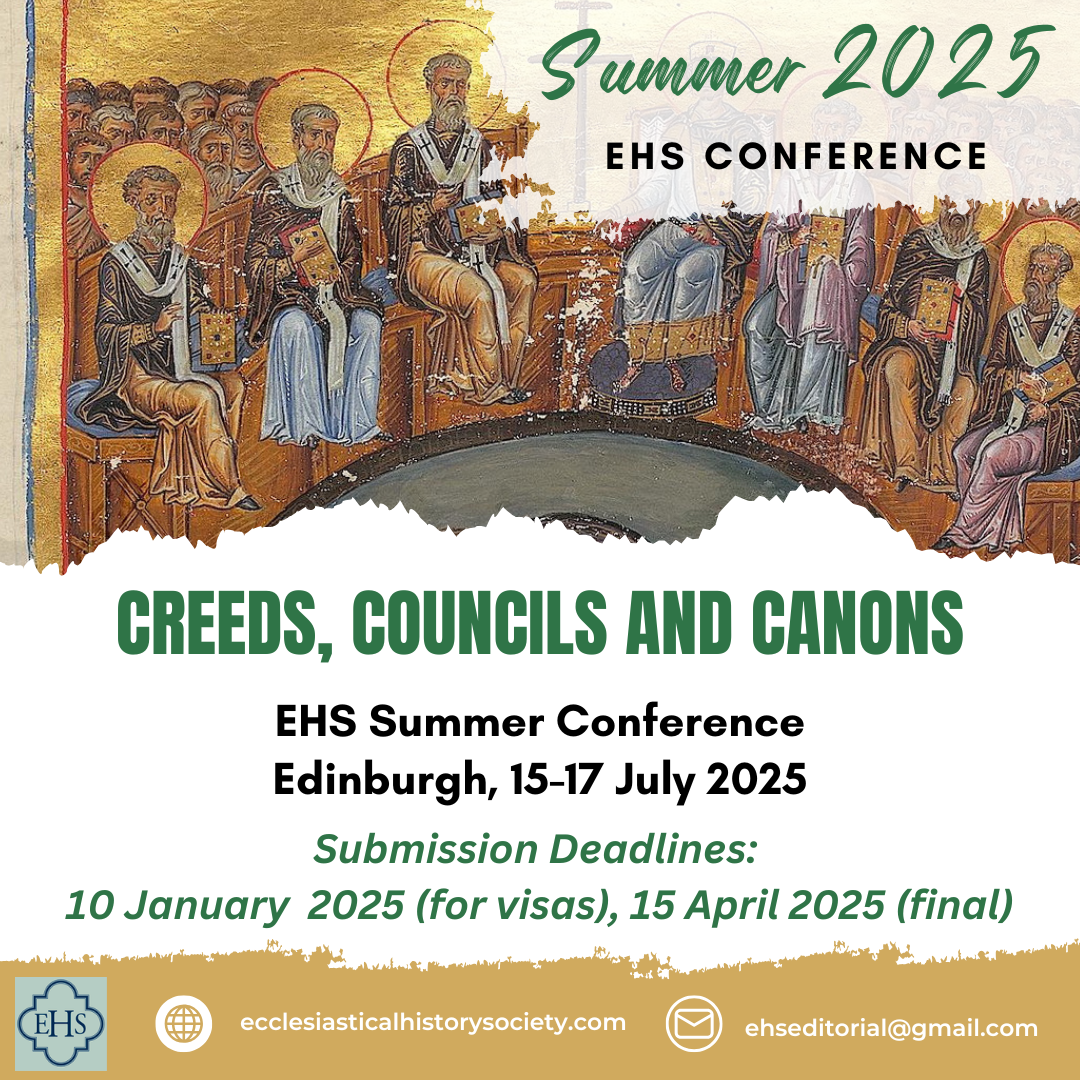 The 2025 EHS Conference theme will be ‘Creeds, Councils and Canons’, held in Edinburgh on 15-17 July 2025.