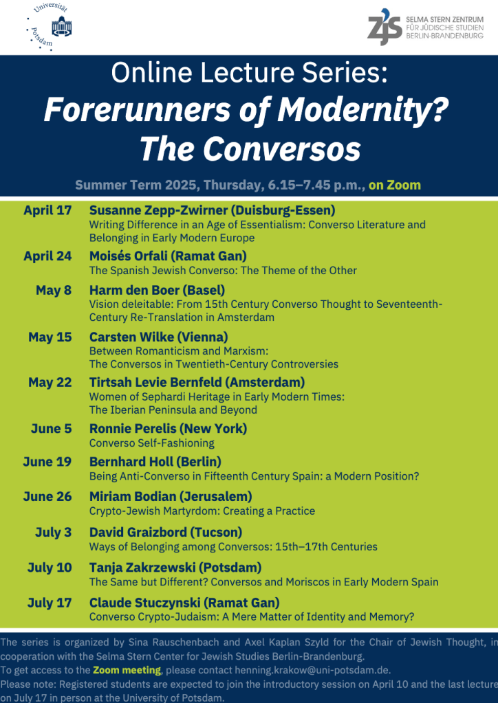 3. Juli – David Graizbord (Tucson): Ways of Belonging among Conversos: 15th–17th Centuries