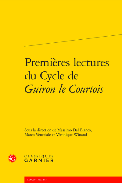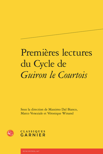 Dernier grand cycle romanesque de la matière arthurienne médiévale médiévale en français (après le Lancelot-Graal et le Tristan en prose), Guiron le Courtois est longuement demeuré inédit, donc négligé par la critique. La récente parution de l’édition intégrale du texte par le « Groupe Guiron » permet désormais à la communauté scientifique de l’étudier en profondeur et d’en déceler les particularités. C’est à cette tâche que s’attèlent ces « premières lectures », où sont notamment examinés les mécanismes narratifs mis en oeuvre dans les différentes composantes du cycle, les relations qu’elles entretiennent avec d’autres textes arthuriens, les thématiques qui y sont abordées et l’influence majeure du Guiron sur le Roland furieux de l’Arioste.
