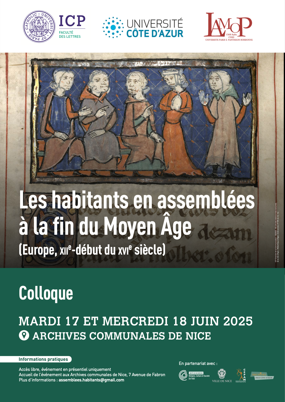 - 10h20-10h45 : Clément Carnielli (Université de Turin, ERC DEMALPS), « Ubi multitudo, ibi confusio » ? Les assemblées d’habitants en Haute-Provence, XIIIe-XVe siècle