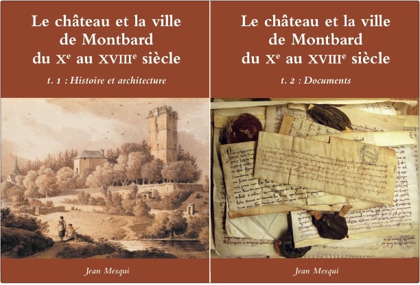Jean Mesqui, Le château et la ville de Montbard du Xe au XVIIIe siècle, Ciry-le-Noble, Centre de Castellologie de Bourgogne, 2025 ; 2 vol., 360 p. + 520 p. Prix : € 30,00 + € 30,00.