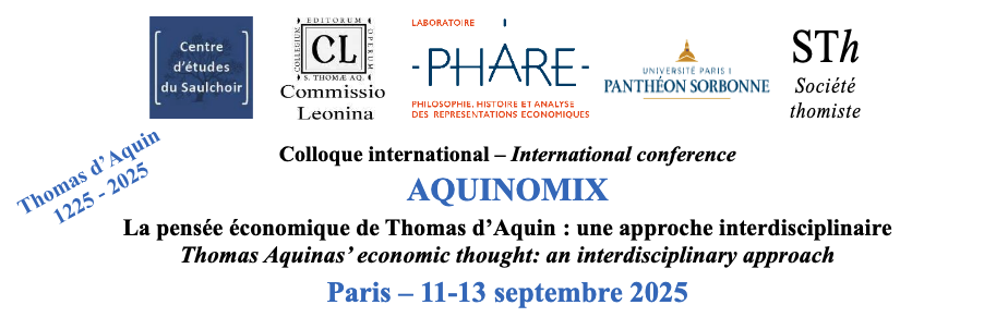 À l’occasion des 800 de la naissance de Thomas d’Aquin (c. 1225-1274), Le centre d’études du saulchoir, centre de recherche pluridisciplinaire des dominicains, et le laboratoire PHARE de l’univerité Paris 1 Panthéon-Sorbonne, en partenariat avec la Commission léonine et la Société thomsite, organisent un colloque international interdisciplinaire sur la pensée économique de Thomas d’Aquin du 11 au 13 septembre 2025 à Paris.