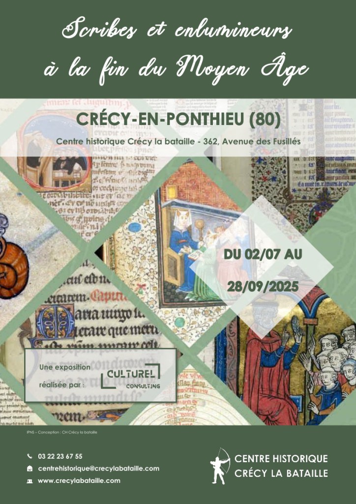 Le Centre historique Crécy la bataille propose du 2 juillet au 28 septembre 2025 une nouvelle exposition temporaire intitulée Scribes et enlumineurs à la fin du Moyen Âge.