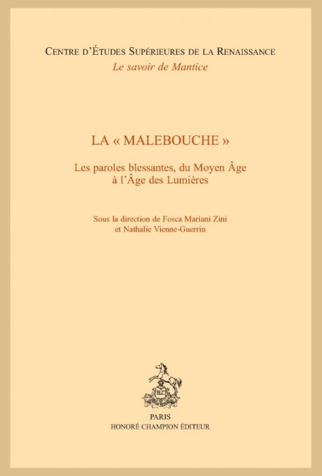 La « malebouche ». Les paroles blessantes, du Moyen Âge à l’Âge des Lumières, éd. Fosca Mariani Zini, Nathalie Vienne-Guerrin, Paris, Honoré Champion, 2025 ; 1 vol., 394 p. (Le savoir de Mantice, 35). ISBN : 978-2-74536-407-4. Prix : € 72,00.