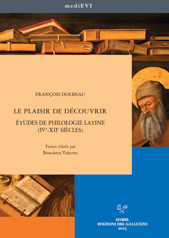François Dolbeau, Le plaisir de découvrir. Études de philologie latine (IVe-XIIe siècles), éd. Benedetta Valtorta, Florence, SISMEL – Edizioni del Galluzzo, 2025 ; 1 vol., XII–712 p. (mediEVI, 44). ISBN : 978-88-9290-394-4. Prix : € 86,00.
