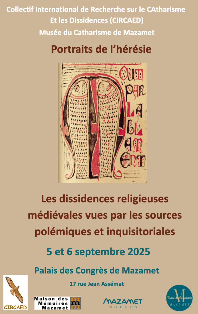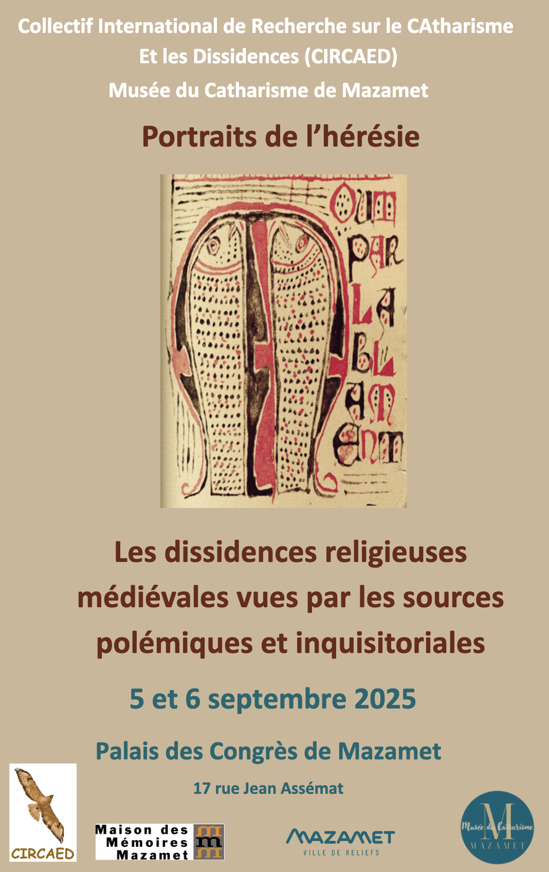 Les représentations de l’hérésie dans les textes polémiques et inquisitoriaux médiévaux sont protéiformes. Elles s’étendent des emprunts textuels faits aux polémiques anti- hérétiques anciennes à des descriptions vivaces des croyances et des pratiques des groupes dissidents par leurs observateurs catholiques jusqu’aux documents inquisitoriaux. Loin de parler d’une voix unifiée ou de représenter un seul programme de controverse, la littérature catholique médiévale sur l’hérésie présente une immense variation interne, appelant notre attention sur la nécessité d’étudier les textes individuels. Ce colloque international organisé par le Collectif International de recherche sur le catharisme et les dissidences (CIRCAED), avec le soutien du Musée du Catharisme de Mazamet et de Dissident Networks Project (DISSINET, https://dissinet.cz), rassemble des chercheurs de différents pays et positions dans les débats autour des images et réalités de l’hérésie médiévale.