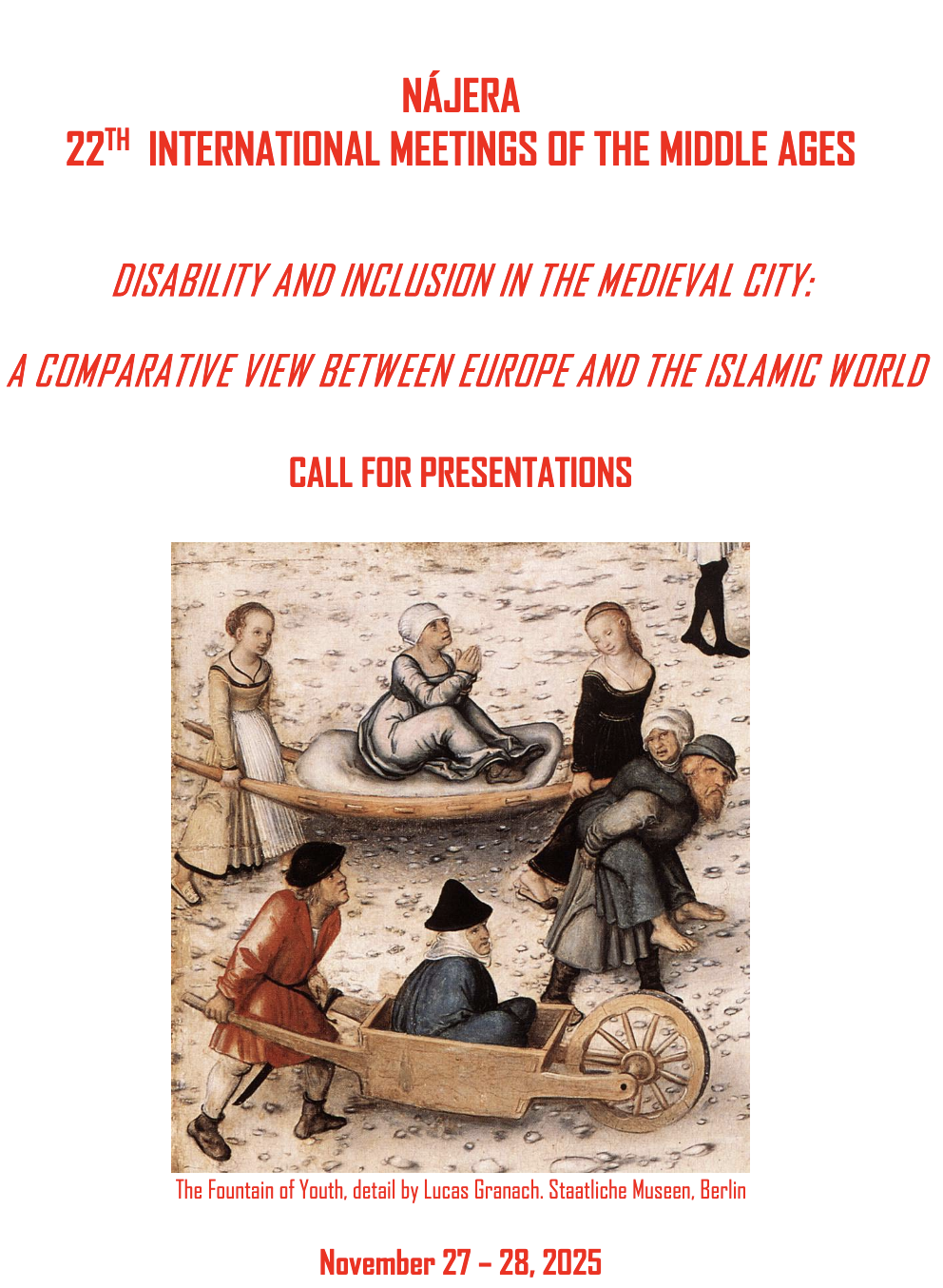 The 22th Meetings of Medieval History in Najera want to expose how people with disabilities were perceived and treated in medieval society, as well as the forms of integration from a comparative perspective between European and Islamic world cities.