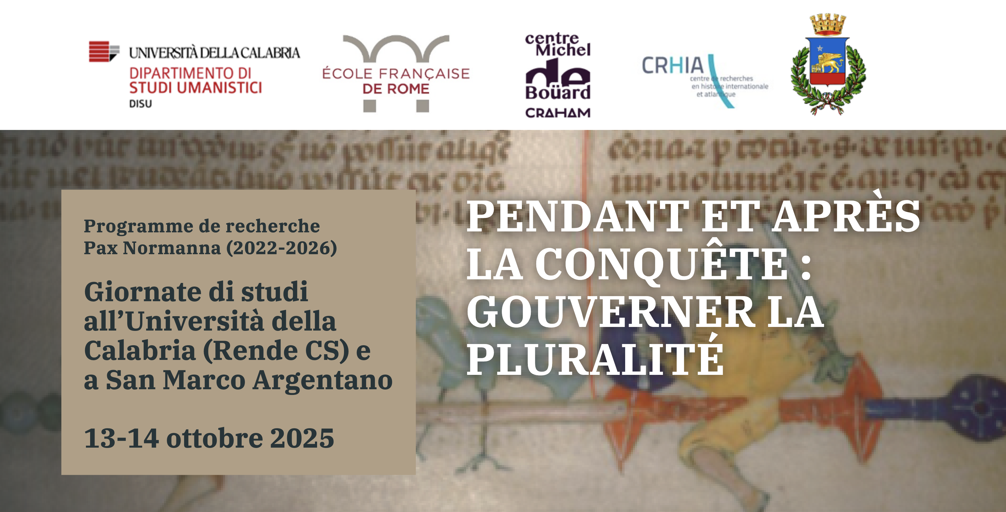 Journées d’études organisées dans le cadre du Programme de recherche Pax Normanna (2022-2026) à l’Università della Calabria (Rende CS) et à San Marco Argentano, 13-14 octobre 2025.