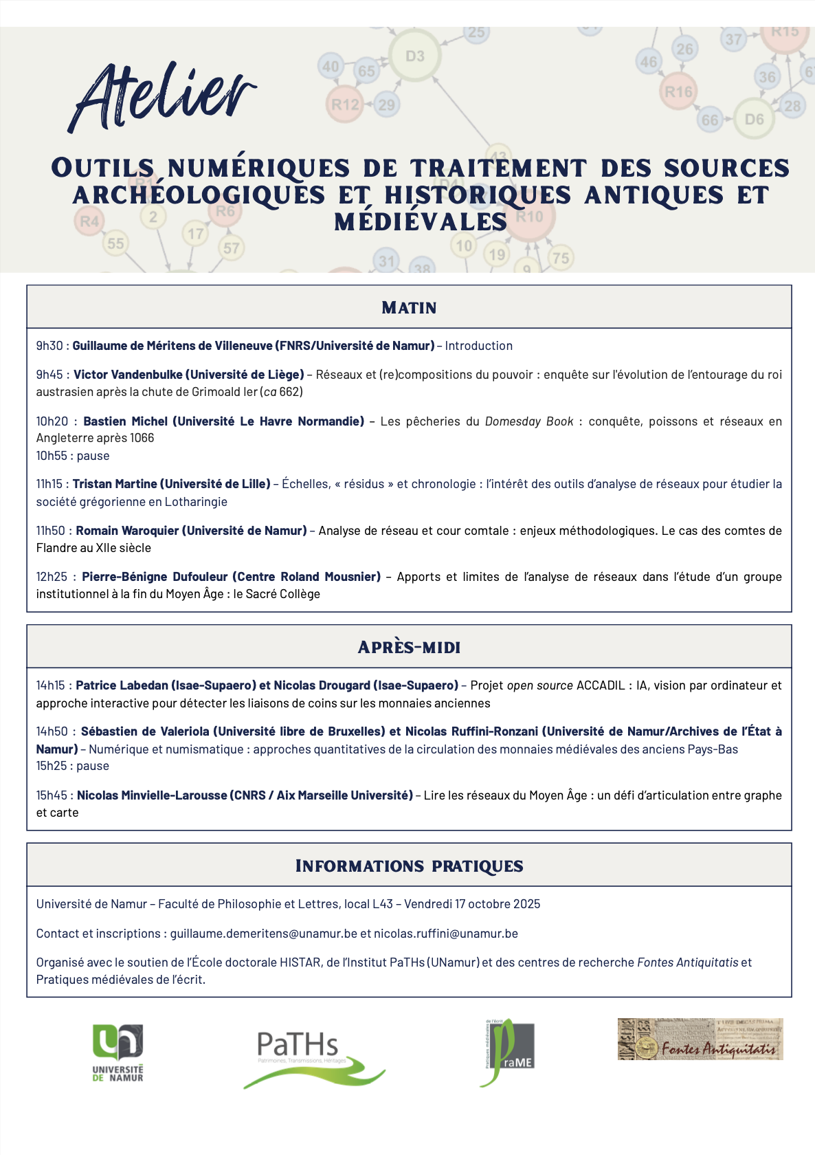 Organisé avec le soutien de l’École doctorale HISTAR, de l’Institut PaTHs (UNamur) et des centres de recherche Fontes Antiquitatis et Pratiques médiévales de l’écrit.