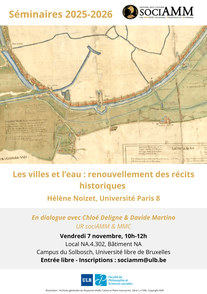Le 7 novembre prochain, SociAMM aura le plaisir d’accueillir Hélène Noizet, professeure d’histoire médiévale à l’Université Paris 8 et membre du Laboratoire ARSCAN, pour un séminaire intitulé Les villes et l’eau : renouvellement des récits historiques, en dialogue avec Chloé Deligne et Davide Martino (sociAMM ; MMC).