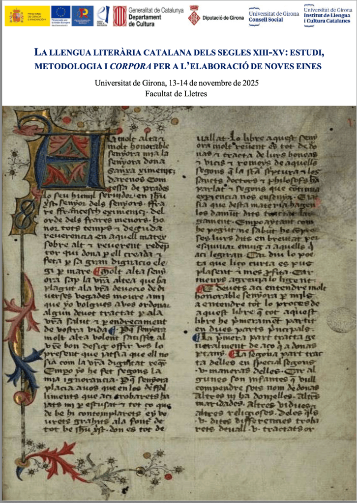 El workshop “La llengua literària catalana dels segles XIII-XV: estudi, metodologia i corpora per a l’elaboració de noves eines” vol oferir als especialistes un espai per debatre sobre les limitacions, les necessitats i els reptes que avui planteja l’anàlisi de la llengua literària dels segles XIII-XV, tant pel que fa a la poesia com a la prosa.