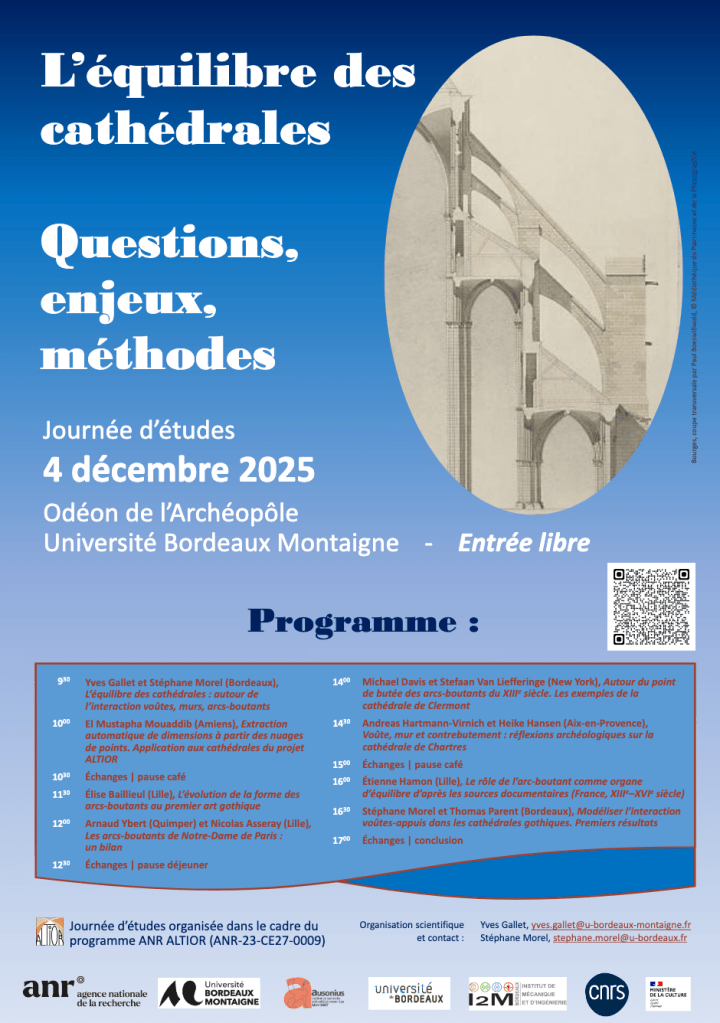Journée d’études : « L’équilibre des cathédrales. Questions, enjeux, méthodes » (Université Bordeaux Montaigne, Odéon de l’Archéopôle, 4 décembre 2025)
