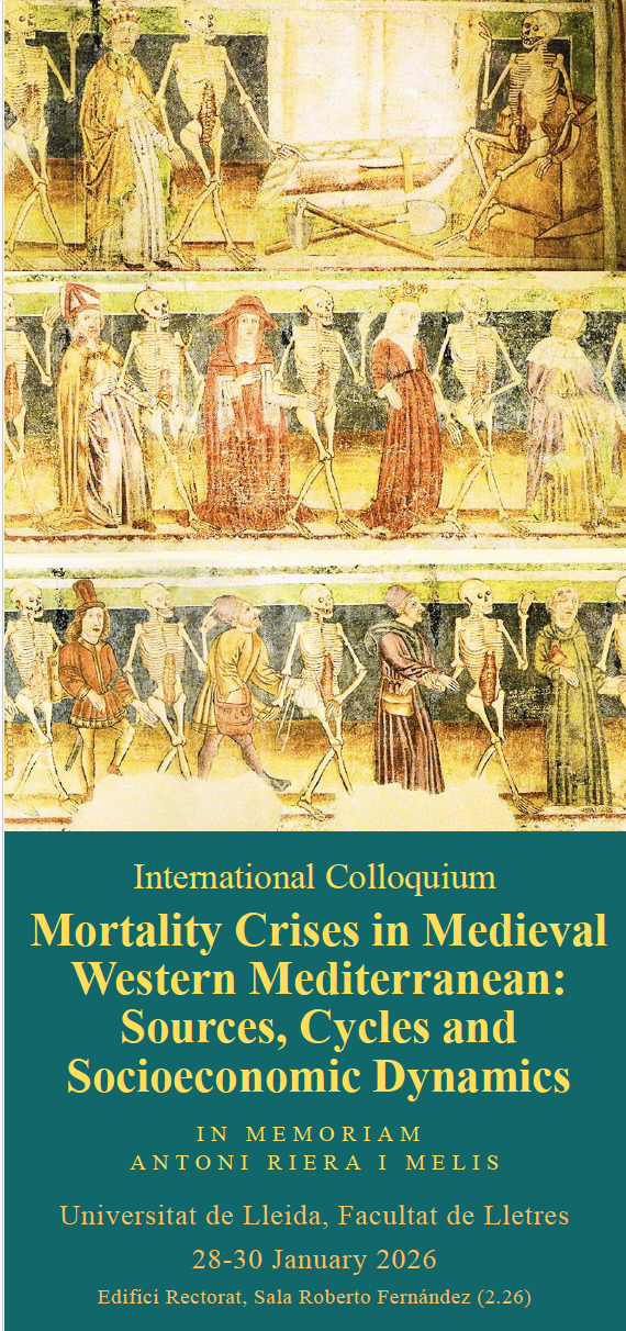 This colloquium will focus on some of the fundamental aspects of mortality crises recorded in the western Mediterranean during the medieval period. More specifically, it will address the sources and the initial results of the reconstruction of those cycles in which mortality exceeded ordinary levels as a consequence of sudden events such as epidemics, famines, wars, or natural disasters.