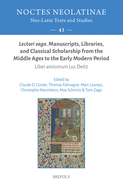 Lectori vago. Manuscripts, Libraries, and Classical Scholarship from the Middle Ages to the Early Modern Period. Liber amicorum Luc Deitz, éd. Claude D. Conter, Thomas Falmagne, Marc Laureys, Christophe Marinheiro, Max Schmitz, Tom Zago, Turnhout, Brepols, 2026 ; 1 vol., 668 p. (Noctes Neolatinae, 43). ISBN : 978-2-503-62449-5. Prix : € 75,00.