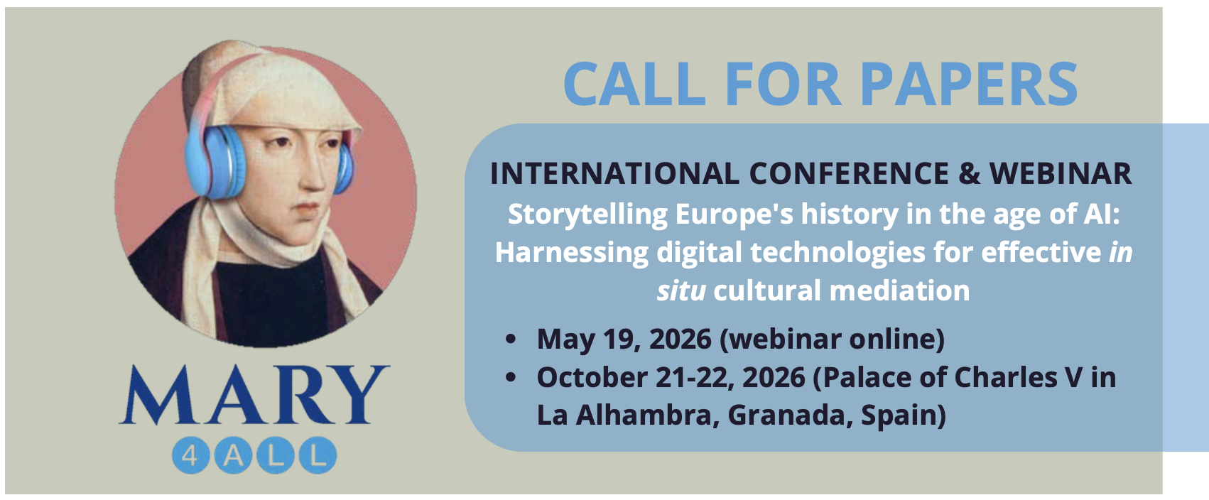 The MARY4ALL project issues a Call for Papers for the International Conference and Webinar Storytelling Europe’s history in the age of AI: Harnessing digital technologies for effective in situ cultural mediation.