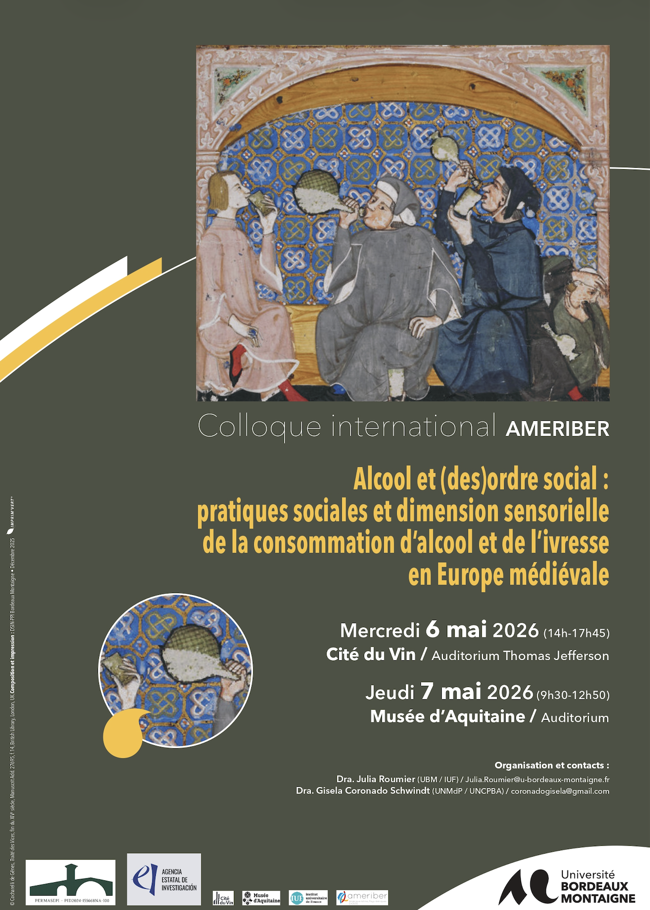 Cette rencontre se propose d’explorer la dimension sociale de la consommation d’alcool, en se concentrant sur la sociabilité qui s’articule avec et à travers la boisson. Nous nous intéressons en particulier à son rôle en tant qu’instrument de différenciation sociale entre les élites, lié au faste, au partage de l’alcool entre femmes ou chez les Vikings, avec des voyageurs, aux chansons à boire, aux bagarres dans les tavernes d’Andalousie, …