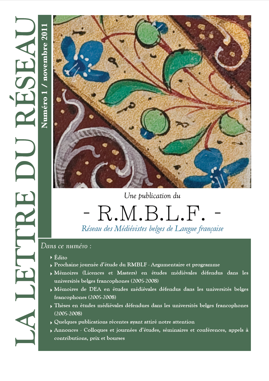 Depuis 1999, le Réseau des médiévistes belges de langue française publie une lettre d’information contenant :